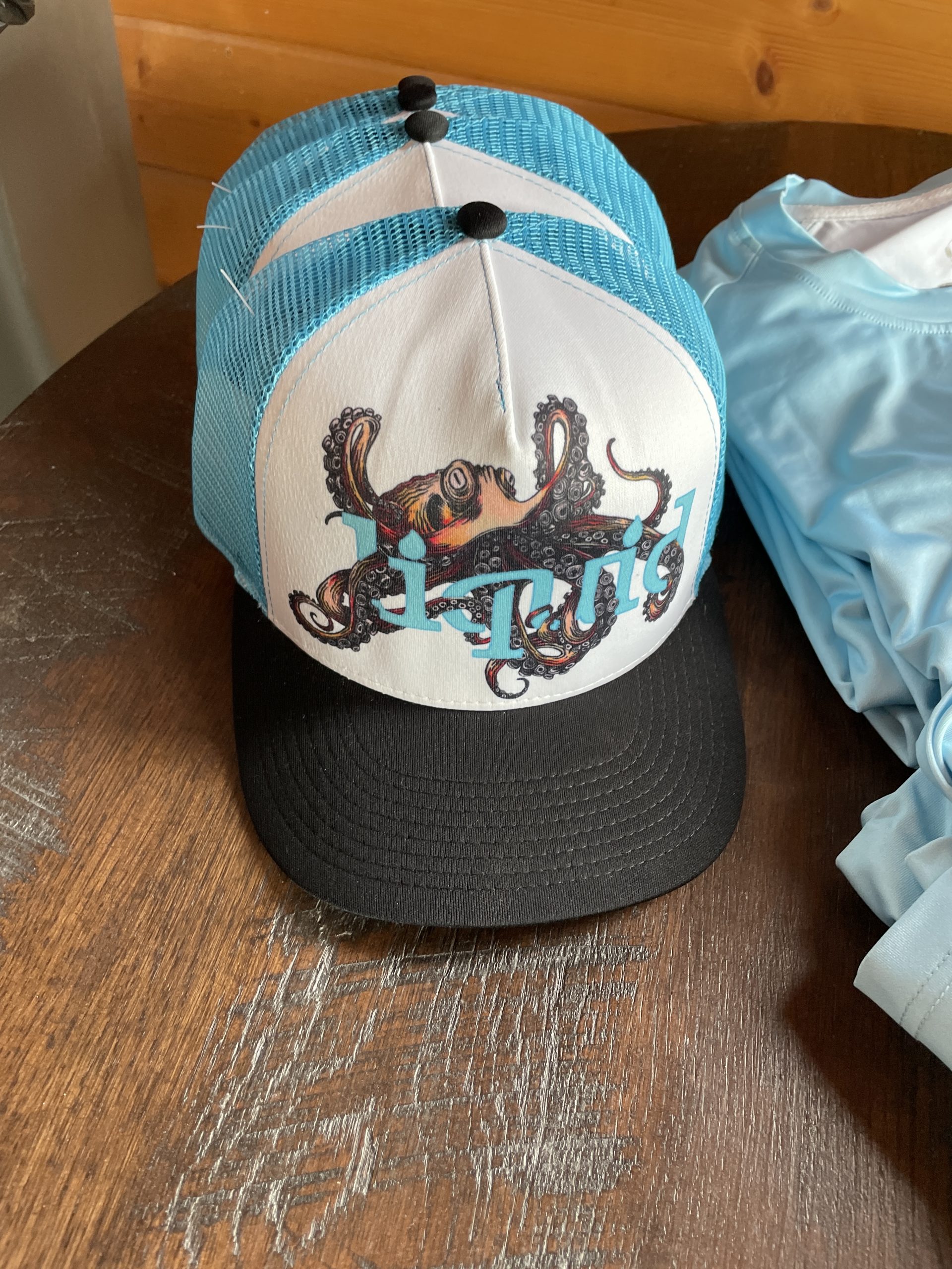 Octopus Logo Hat with Mesh Back. Color Brim. Snapback.
